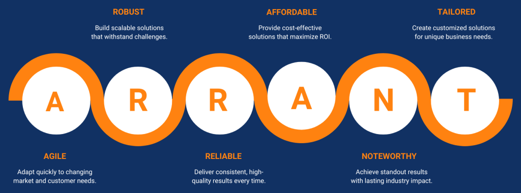 Arrant Tech is a next-generation Workday® consulting partner headquartered in Dallas, with a global delivery hub in Hyderabad. Since 2013, we have been providing organizations with a boutique alternative to large integrators delivering management consulting, business solutions, and change management services with senior-level expertise, agility, and cost-efficiency.
